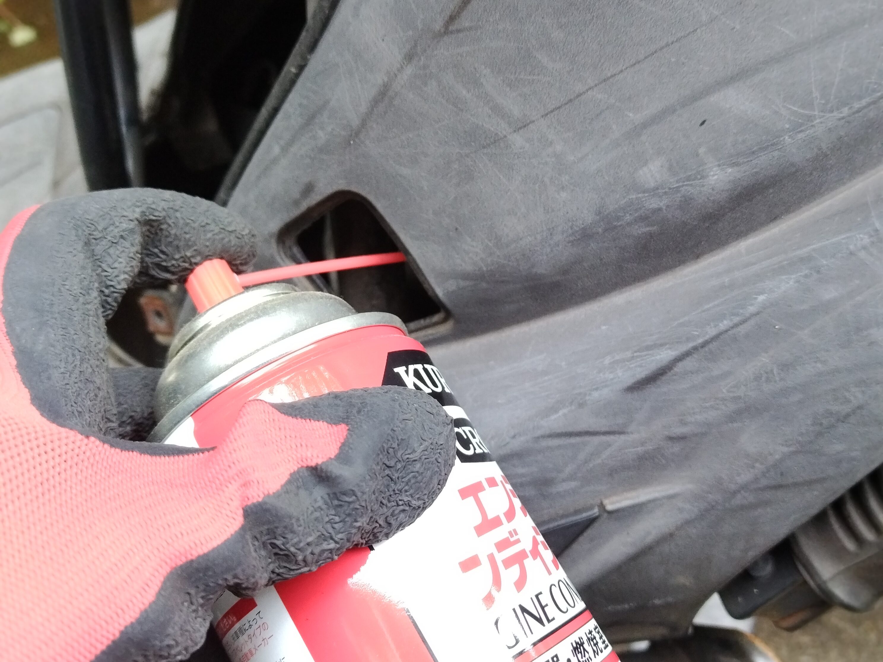 アドレスV125Sのプラグカバーにコンタクトスプレーを吹く